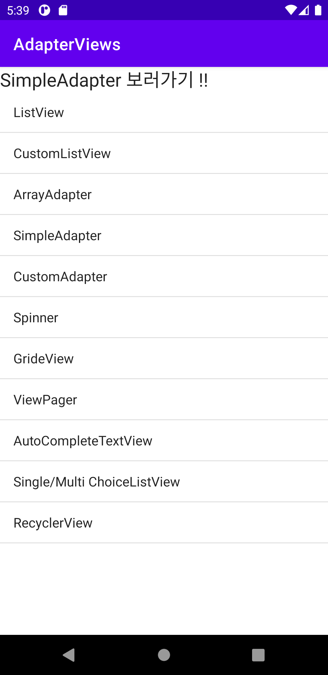- 지금은 RecyclerView 사용을 추천하고 있지만 AdapterView 개념을 공부하기에 적당하다.