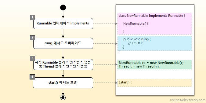 3. Runnable 인터페이스 구현(implements)