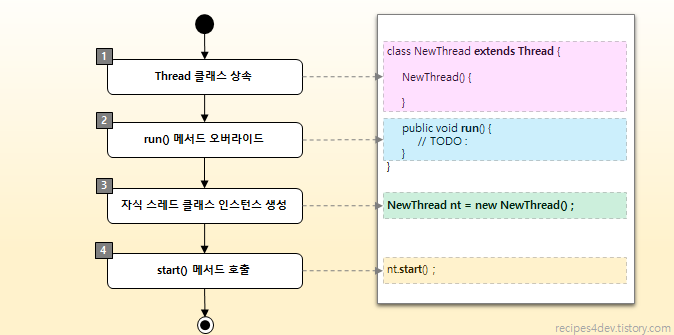2. Thread 클래스 상속(extends)