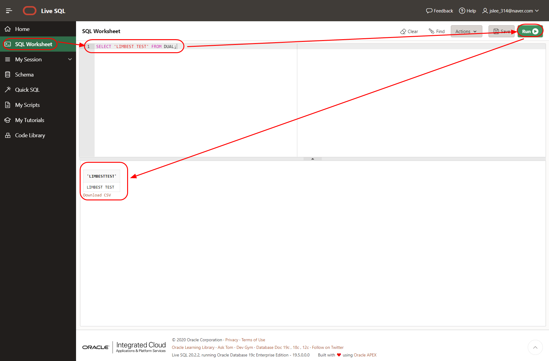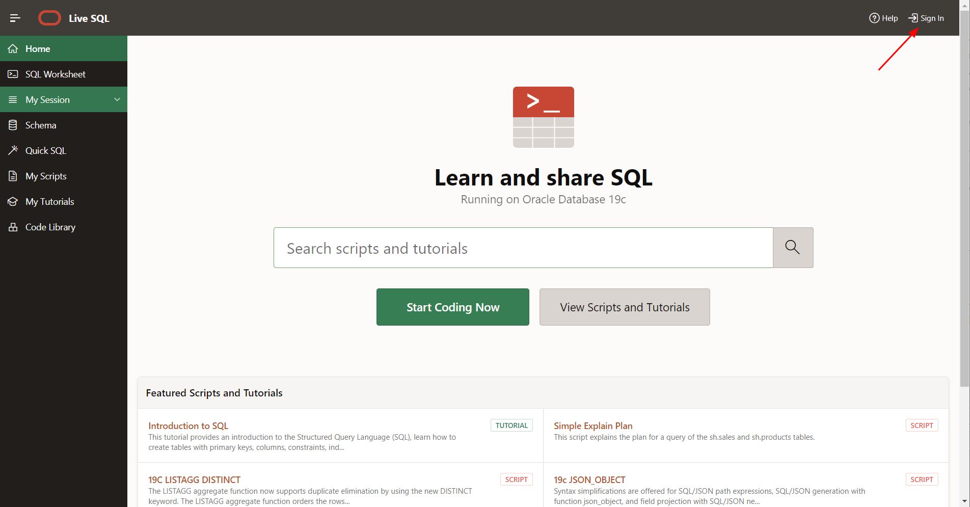 Orable 에서 제공하는 Live SQL 웹사이트를 사용하면