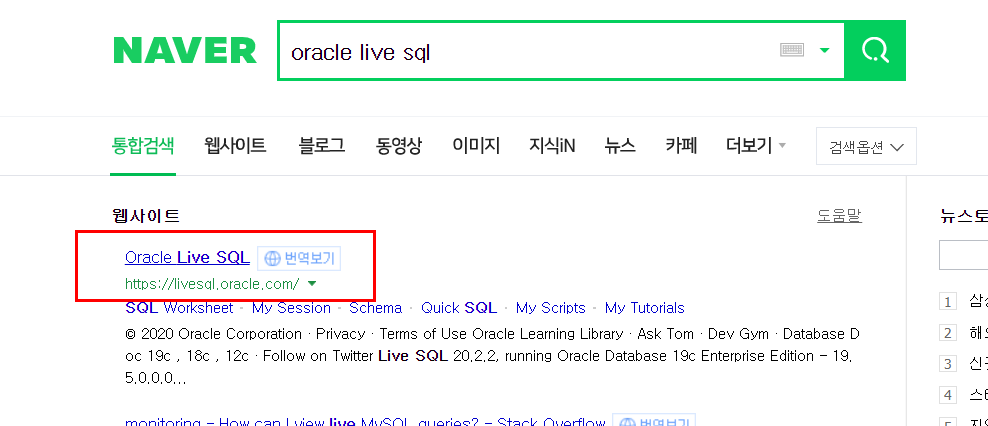 네이버에 oracle live sql 을 검색하고 해당 웹사이트에 접속한다.