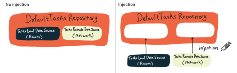 목표는 해당 클래스의 코드 만 테스트하는 것인데 Repository는 작동하기 위해 LocalDataSource 및 RemoteDataSource와 같은 다른 클래스에 의존합니다. 다시말해 LocalTaskDataSource 및 RemoteTaskDataSource가 DefaultTaskRepository의 종속되어 있다는 것입니다. (DataSource are dependencies of Repository)